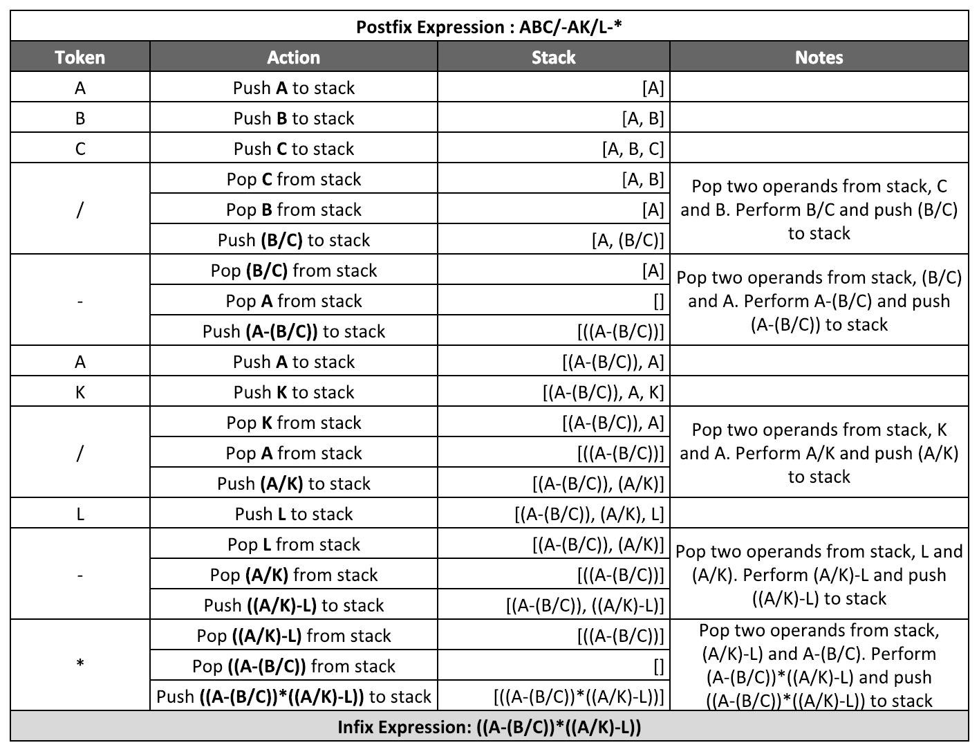 Infix Expression: ((A-(B/C))*((A/K)-L))